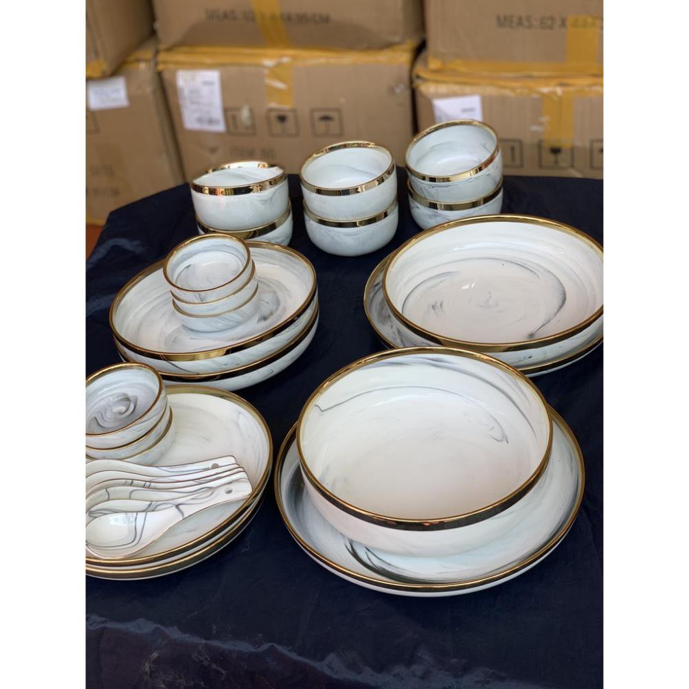 Siêu thị gia dụng xi chào quý khách:Bộ bát đĩa ăn vân đá cao cấp, với vân đá xám, vân đá trắng, vân đá xanh và đũa