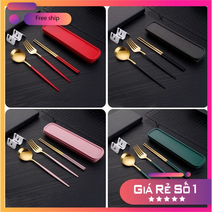 Giới thiệu (Có Sẵn) Bộ Muỗng Đũa Dĩa Thìa Inox 304 Cá Nhân Cơm Trưa Văn Phòng Dã Ngoại Phủ Bóng Sang Trọng