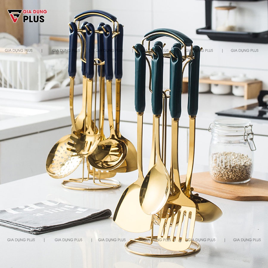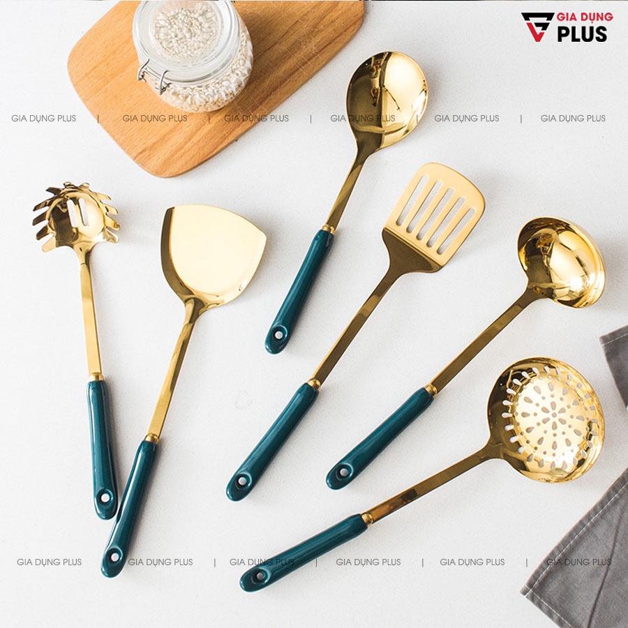 Bộ muôi 7 món cao cấp với tay cầm sứ bao gồm 6 món: muôi, muỗng, xẻng đa năng đủ loại cho mọi nhu cầu nhà bếp nấu nướng và giá đỡ.Được làm từ inox 304, sơn tĩnh điện giúp chống gỉ & trầy xước, thoải mái nấu ăn với sự sang trọng và an toàn sức khoẻ. Tay cầm bằng sứ nung cao cấp.