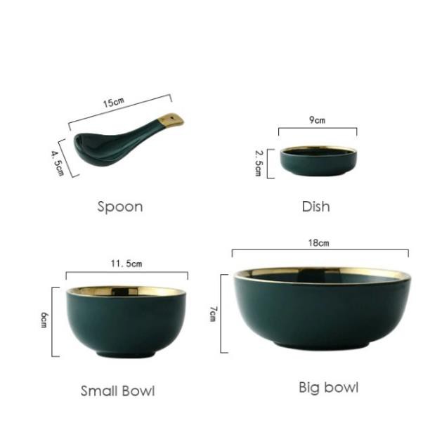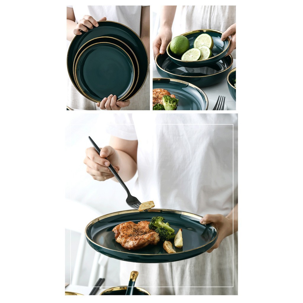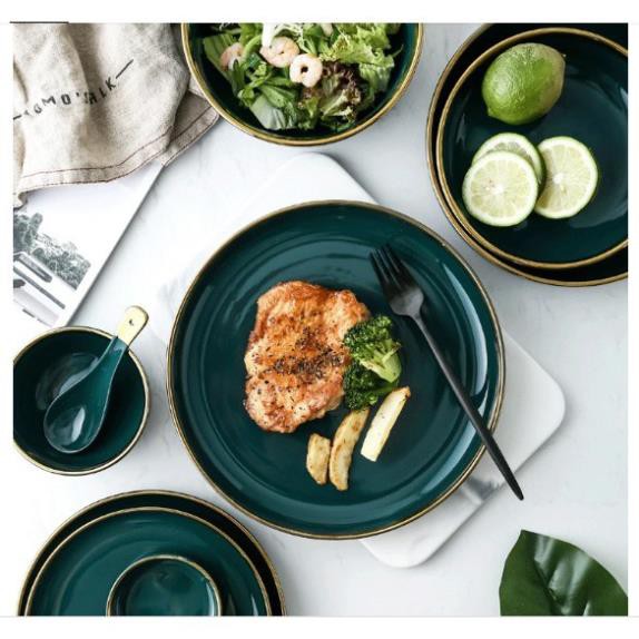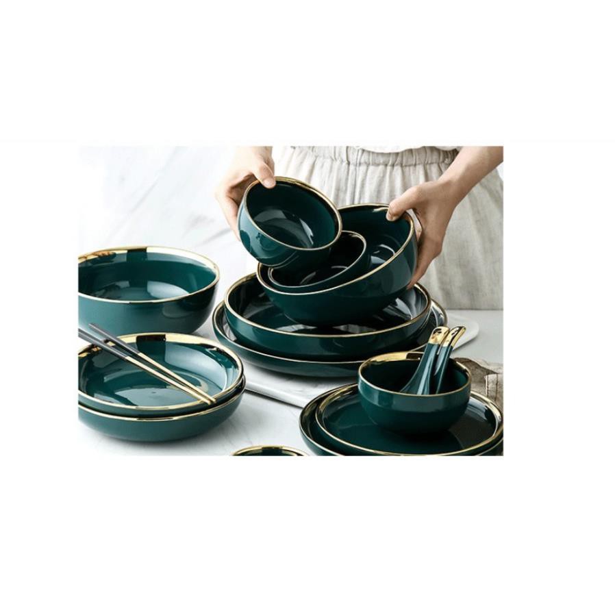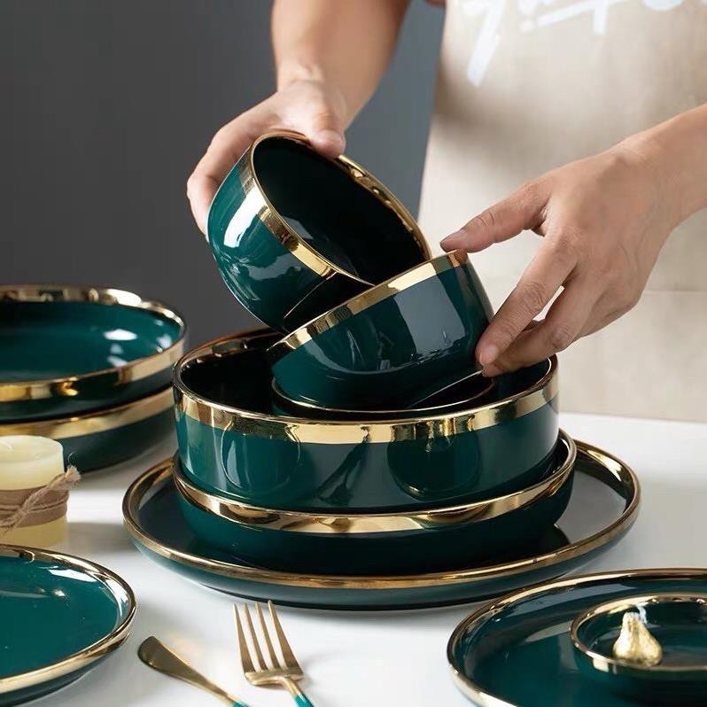 Nhà cửa & Đời sống > Bộ đồ bàn ăn > Tô || [Có sẵn] Bộ xanh viền vàng 32 món phong cách Châu Âu (có ảnh thật)Còn hàng