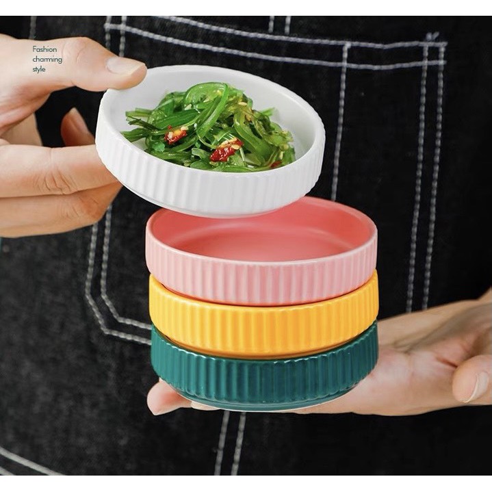 Nhà cửa & Đời sống > Bộ đồ bàn ăn > Dĩa || (SẴN) Chén, đĩa sứ gia vị - men mờ màu pastel - họa tiết vân sọc La Mã - hàng cao cấp không chì xuất khẩuCòn hàng