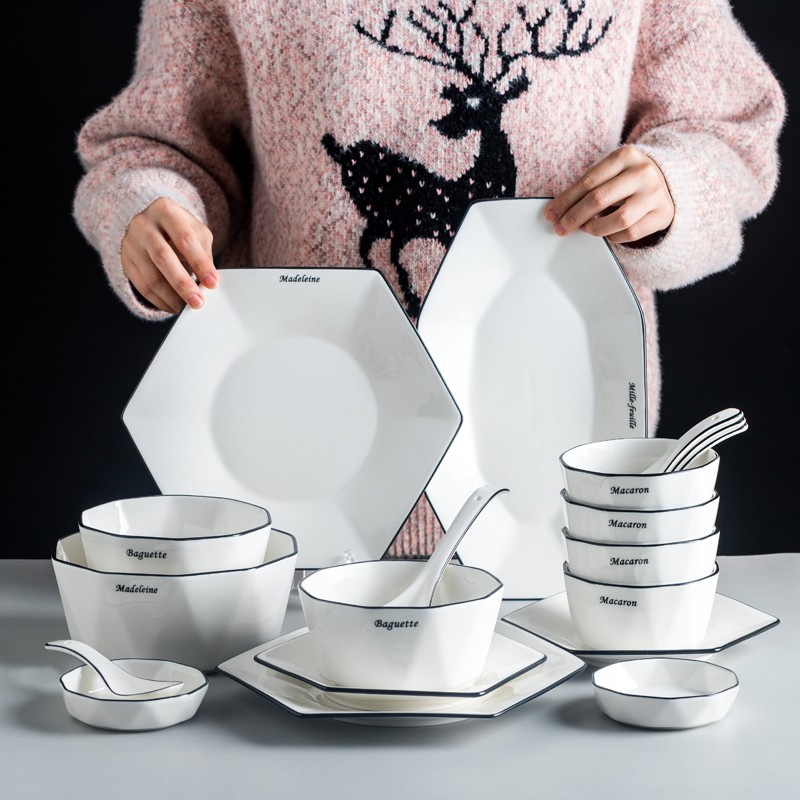 Bộ bát đĩa sứ kim cương trắng được thiết kế theo phong cách Bắc Âu. Các đĩa, bát đều có hình bát giác, khi đặt cạnh nhau có thể ghép hình vừa vặn, đẹp đẽ thành 1 bàn tiệc rực rỡ sắc màu lại cực kì độc đáo và sáng tạo.