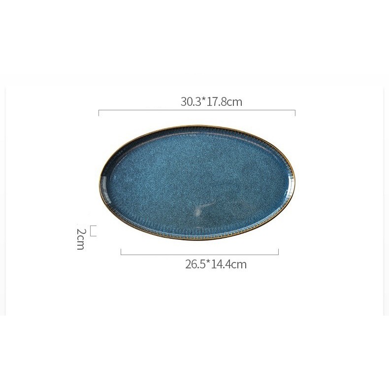 Nhà cửa & Đời sống > Bộ đồ bàn ăn > Dĩa || (SẴN) Đĩa cá, đĩa oval 30cm sứ men xanh hỏa biến Star light - Dĩa oval sứ cao cấp phong cách Bắc ÂuCòn hàng