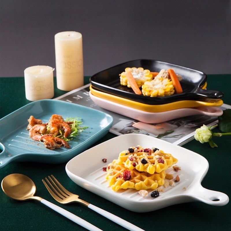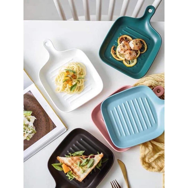 Nhà cửa & Đời sống > Bộ đồ bàn ăn > Dĩa || (Sẵn) Đĩa chảo vuông tay cầm - Sứ phủ men cao cấpCòn hàng