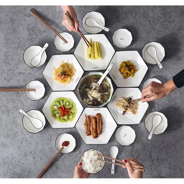 Nhà cửa & Đời sống > Bộ đồ bàn ăn > Dĩa || (SẴN) Đĩa gia vị sứ lục giác kim cương trắng, chén đựng gia vị sứ trắng sang trọng p/c Bắc ÂuCòn hàng