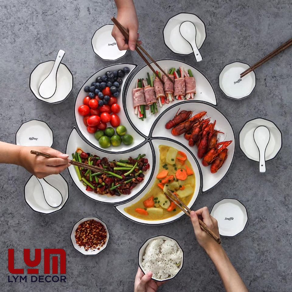 Bộ bát đĩa sứ kim cương trắng được thiết kế theo phong cách Bắc Âu. Các đĩa, bát đều có hình bát giác, khi đặt cạnh nhau có thể ghép hình vừa vặn, đẹp đẽ thành 1 bàn tiệc rực rỡ sắc màu lại cực kì độc đáo và sáng tạo.