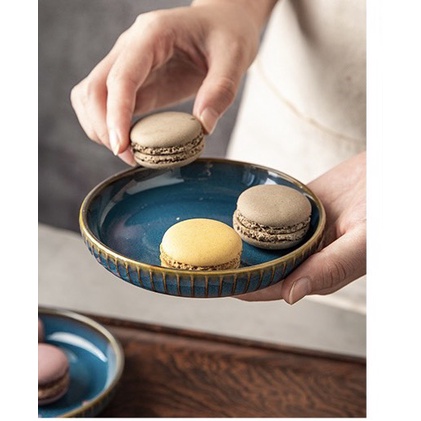 Giới thiệu (SẴN) Đĩa gia vị sứ men xanh hỏa biến Star light - Chén gia vị sứ cao cấp phong cách Bắc Âu