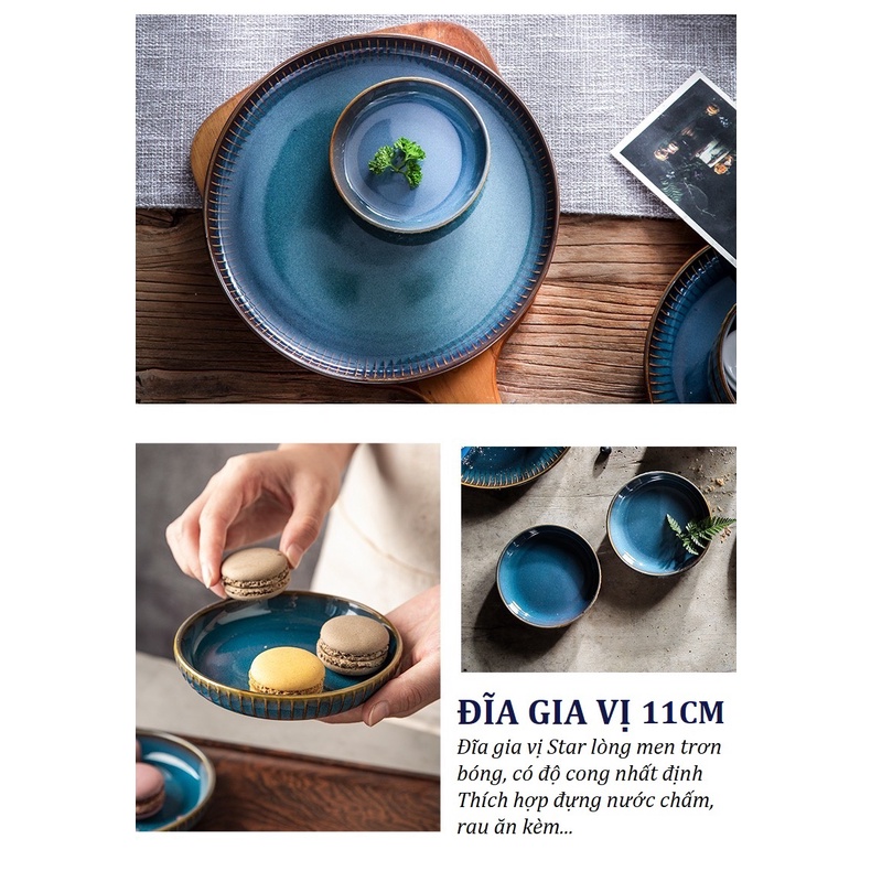 (SẴN) Đĩa gia vị sứ men xanh hỏa biến Star light - Chén gia vị sứ cao cấp phong cách Bắc Âu