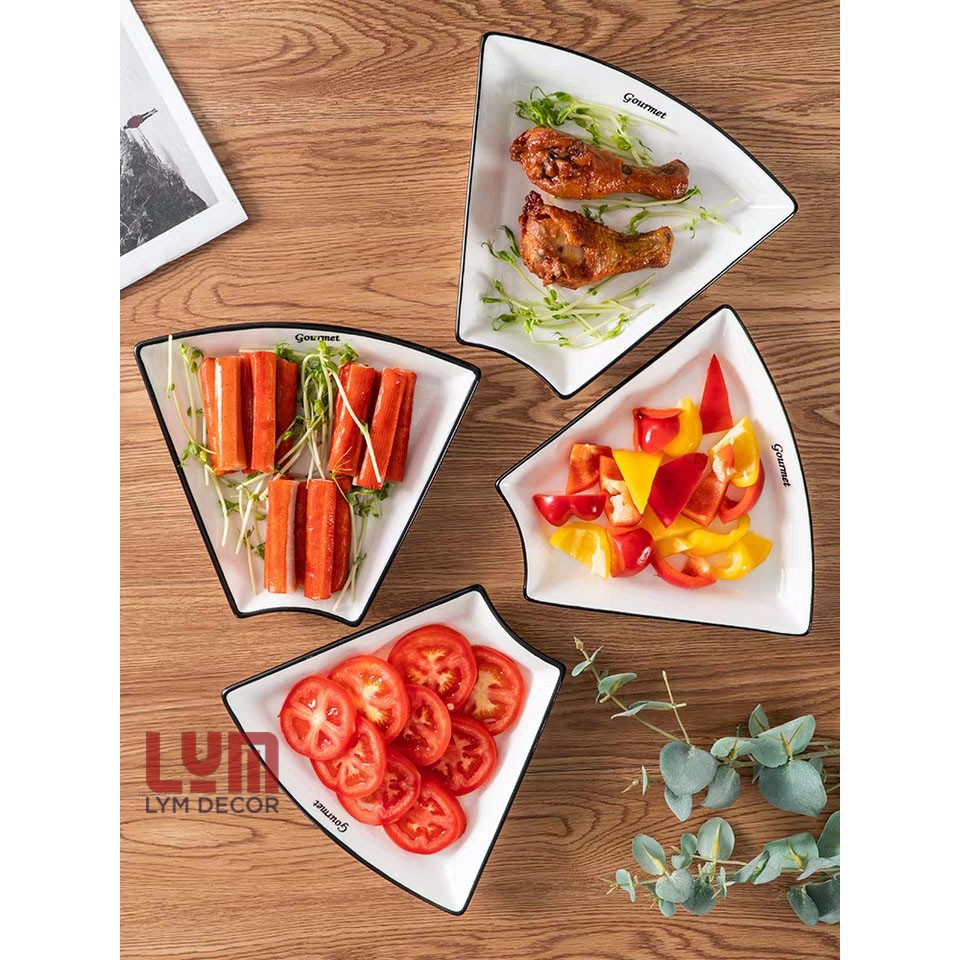 Đĩa sứ kim cương trắng được thiết kế theo phong cách Bắc Âu. Đĩa có hình lá hay mái vòm khum khá độc đáo và ấn tượng, kích cỡ lớn để bạn có thể thoải mái bày đồ ăn theo ý mình.