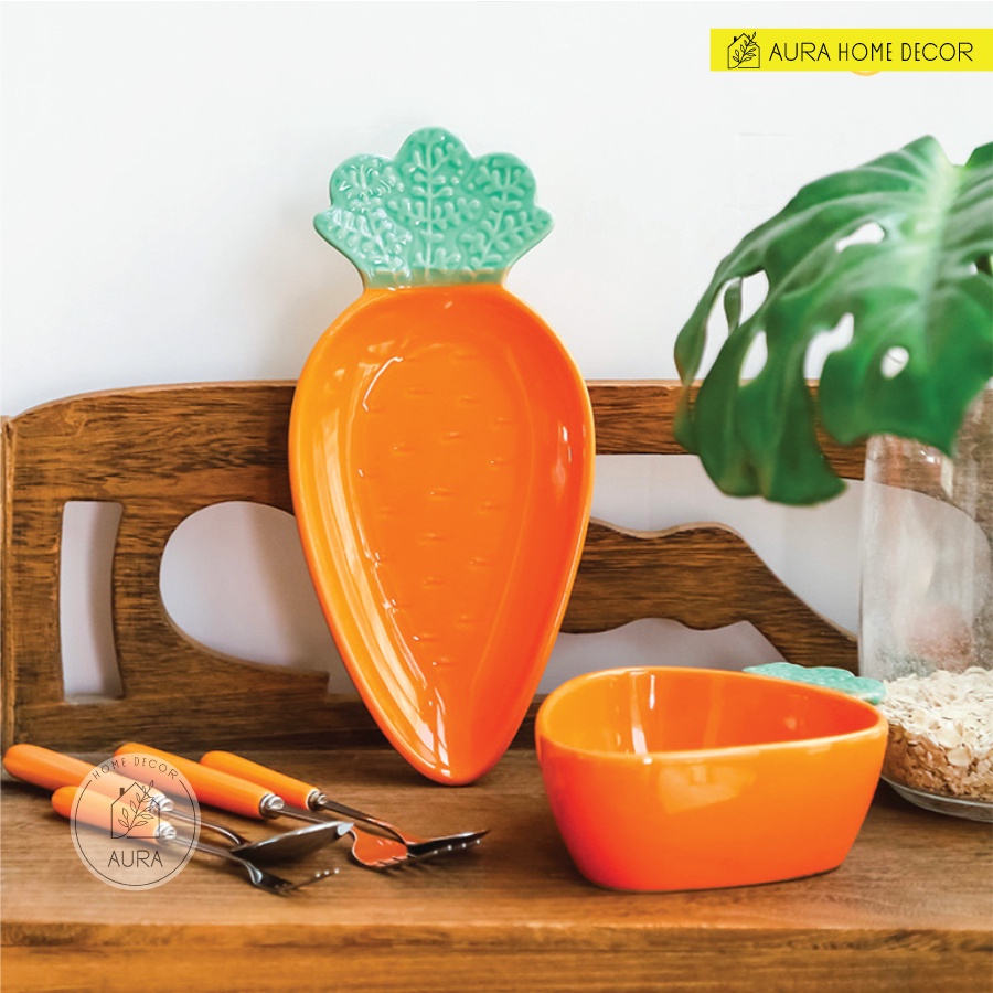 Giới thiệu [SẴN] Đĩa nướng, bát ăn dặm hình cà rốt dễ thương - Carot màu cam nổi bật HOT mùa hè