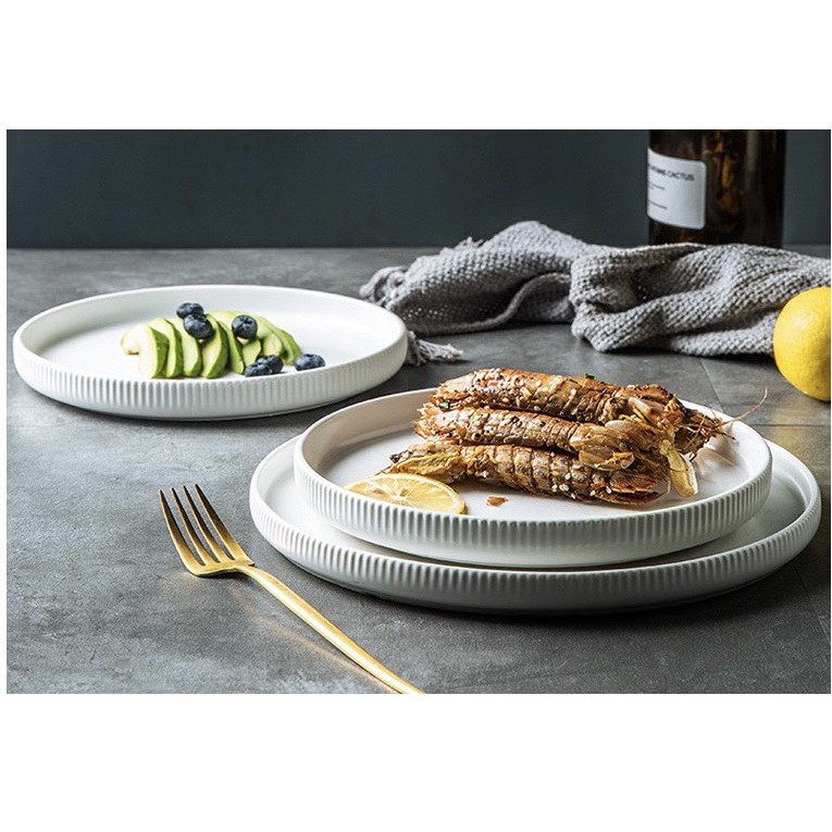Nhà cửa & Đời sống > Bộ đồ bàn ăn > Dĩa || (SẴN) Đĩa sứ men mờ trắng sọc Cruise sang trọng - Dĩa sứ cao cấp phong cách Bắc ÂuCòn hàng