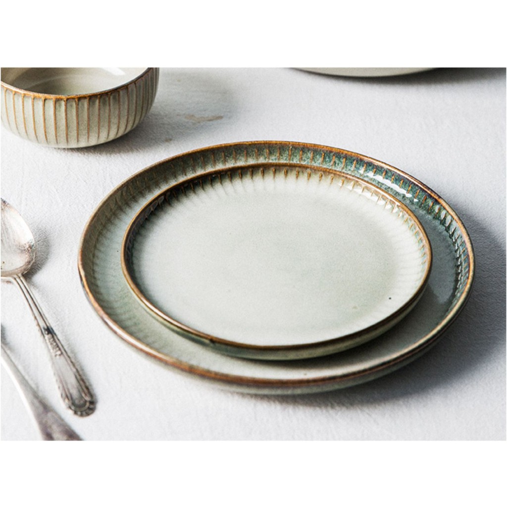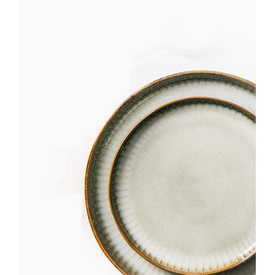 Nhà cửa & Đời sống > Bộ đồ bàn ăn > Dĩa || (SẴN) Đĩa sứ tròn viền sọc nâu vàng Star phong cách Bắc Âu - hàng cao cấp không chì xuất khẩuCòn hàng