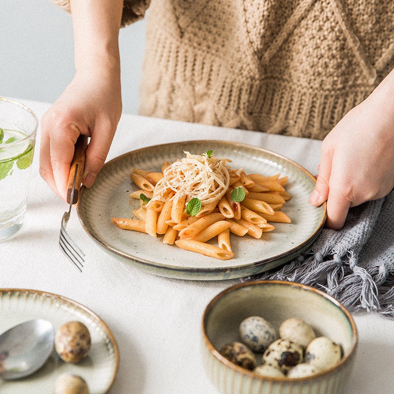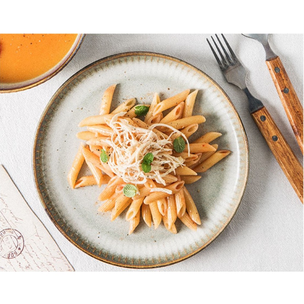 Đĩa sứ tròn được thiết kế theo phong cách Bắc Âu, tối giản mà tinh tế, trang nhã, tạo sự hài hòa trong trang trí nội thất hiện đại.
