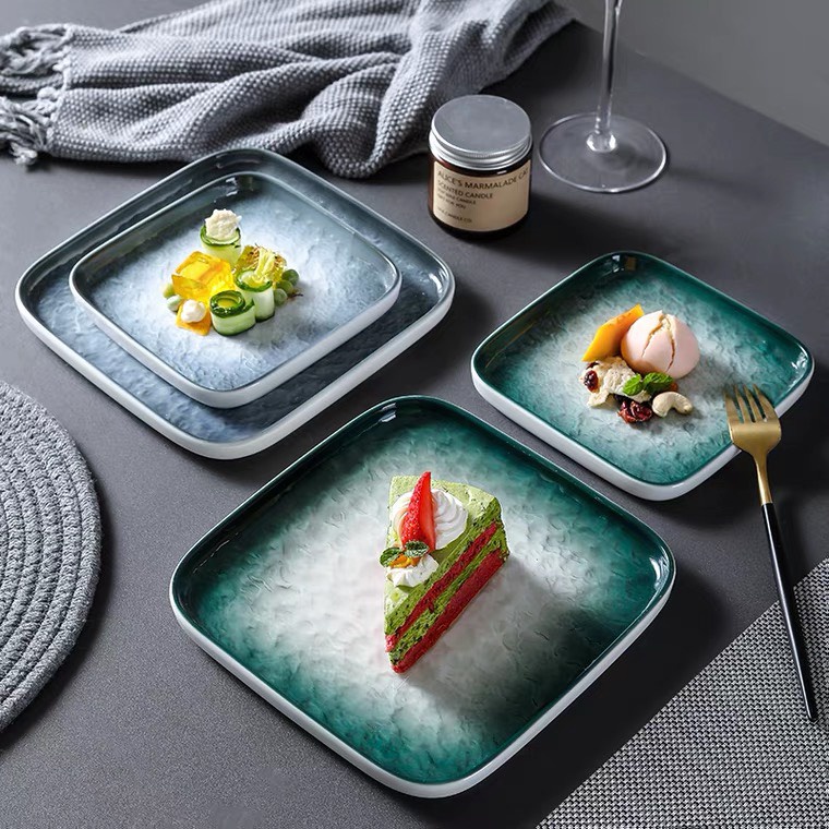Nhà cửa & Đời sống > Bộ đồ bàn ăn > Dĩa || (SẴN) Đĩa sứ vuông vân đá chống xước phong cách Bắc Âu , sứ cao cấp không chì xuất khẩuCòn hàng