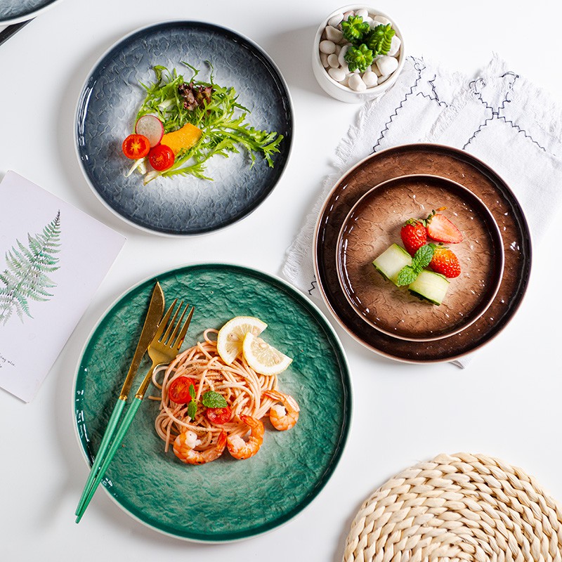 Nhà cửa & Đời sống > Bộ đồ bàn ăn > Dĩa || (SẴN) Đĩa tròn vân đá phong cách Bắc Âu chống trầy xước - beefsteak - bít tết - Sứ không chì cao cấpCòn hàng