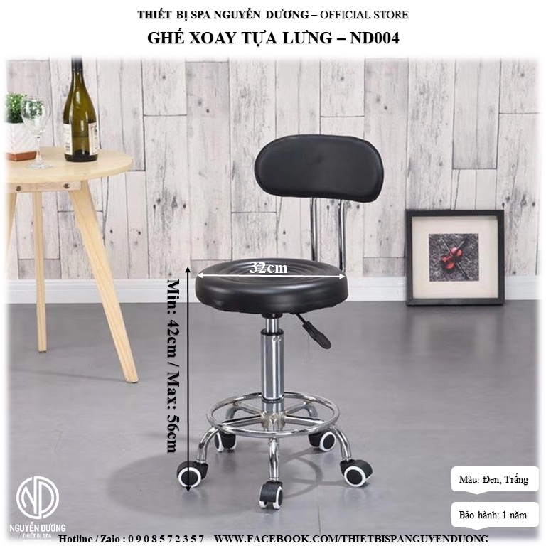 [Có Sẵn], [Giá Tốt] Ghế Xoay Nâng Hạ Có Tựa Lưng Cho Kỹ Thuật Viên Spa - Nệm Thường (Đen)