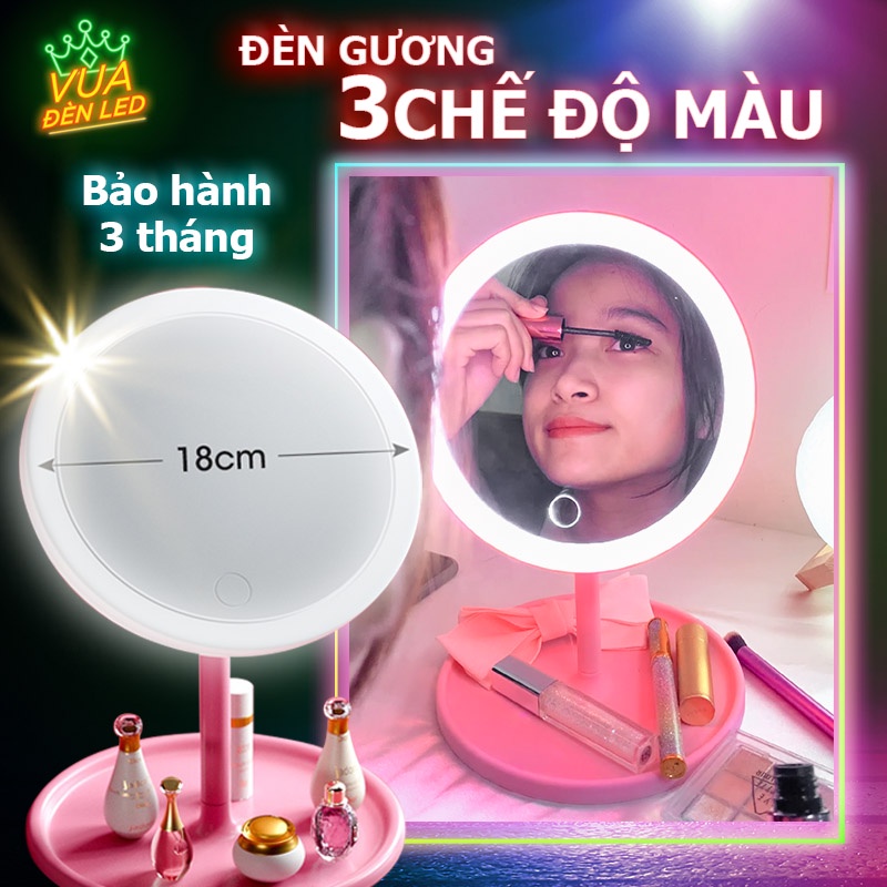 Giới thiệu 【Có sẵn】Gương để bàn trang điểm có đèn led cảm ứng, 3 chế độ ánh sáng