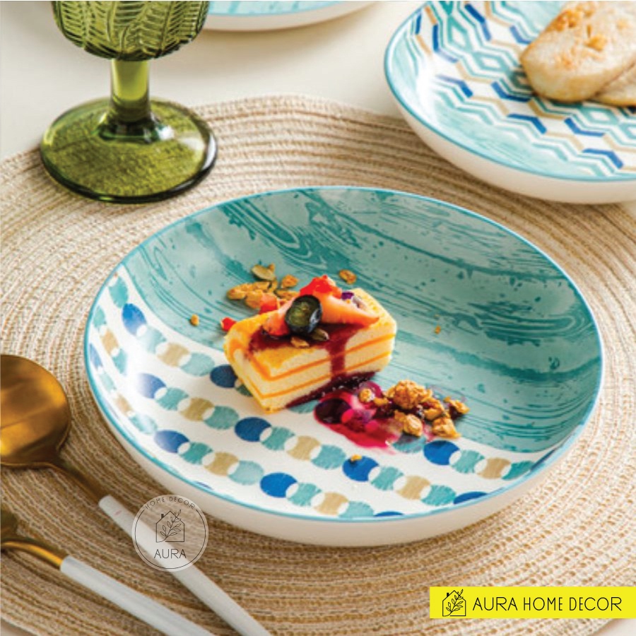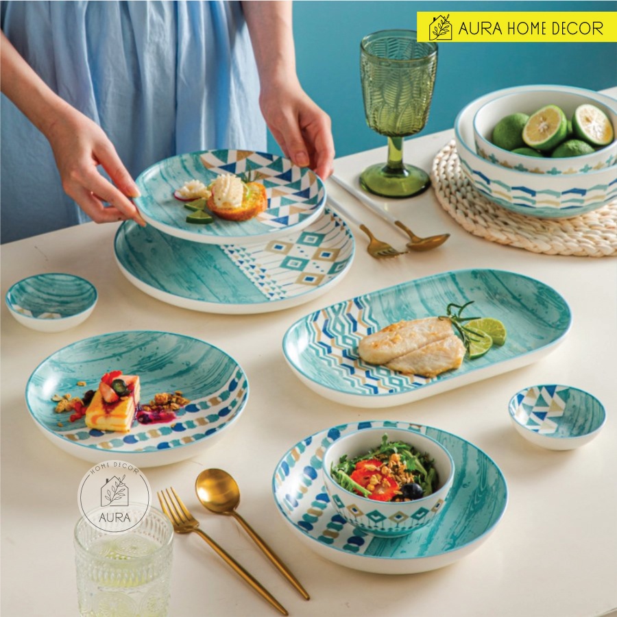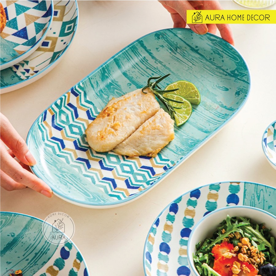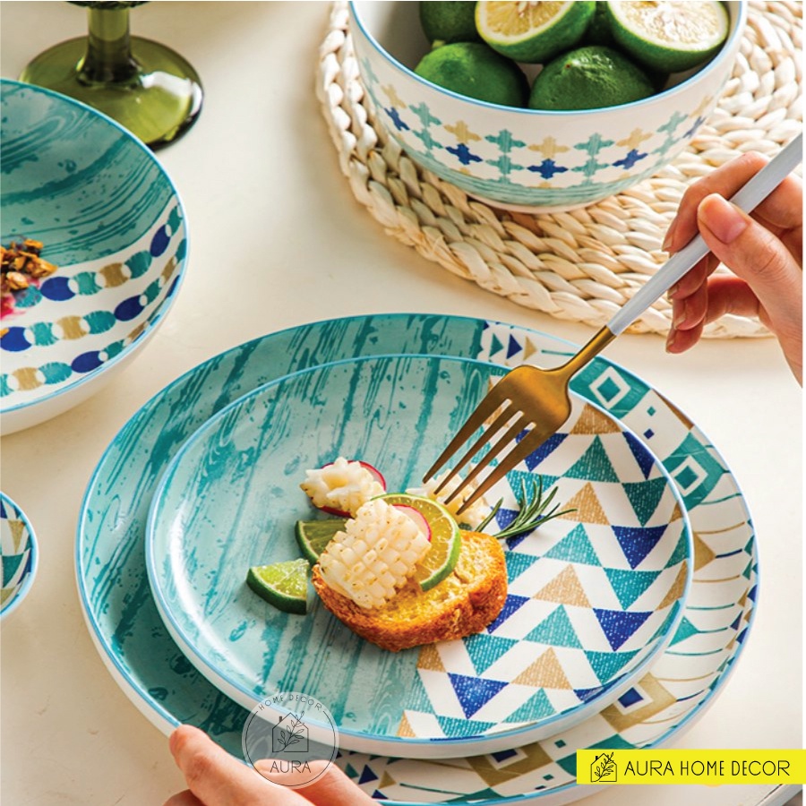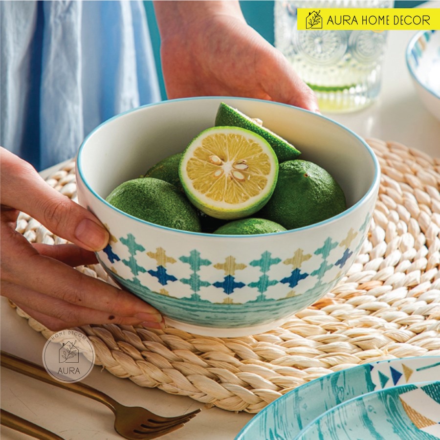 Bộ bát đại dương có bán lẻ từng món hoặc bán set 18 món với chủ đề đại dương lấy màu xanh dương của sóng biển làm màu chủ đạo cùng tạo hình các con sóng nhỏ miên man vỗ vào bờ cát dài dành cho team #yêu_biển, thèm #vitamin_C.Aura Home Decor luôn tự tin cung cấp cho khách hàng những sản phẩm đạt chất lượng cao, bằng thái độ phục vụ và phong cách bán hàng chuyên nghiệp. Sự đa dạng về mẫu mã, kiểu dáng thiết kế, độ mĩ thuật cao của sản phẩm đã và đang đáp ứng mọi nhu cầu của khách hàng.