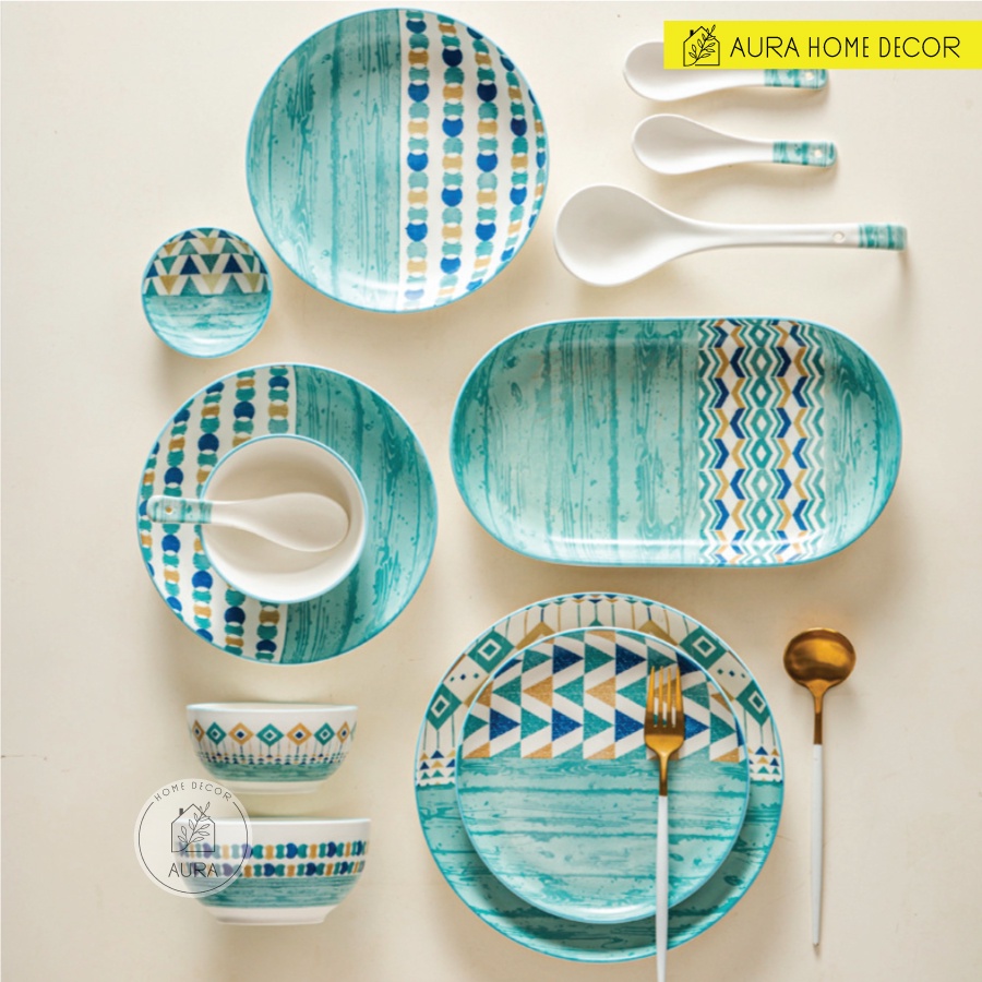 Nhà cửa & Đời sống > Bộ đồ bàn ăn > Dĩa || [SẴN HÀNG] Bộ bát cơm, tô mì, tô canh, đĩa họa tiết tối giản đại dương xanh - Gốm sứ phong cách Nhật BảnCòn hàng
