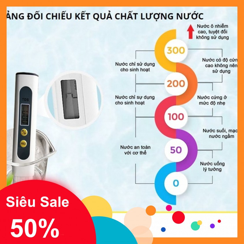 Cách đọc thông số trên bút thử: 0-50 ppm: độ tinh khiết cao, an toàn, có thể uống trực tiếp