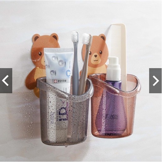 Nhà cửa & Đời sống > Đồ dùng phòng tắm > Kệ đựng bàn chải, kệ nhả kem đánh răng || [Có Sẵn Hàng] Cốc gấu dán tường để bàn chải đánh răng hình gấu có lỗ thoát nước tiện lợiCòn hàng