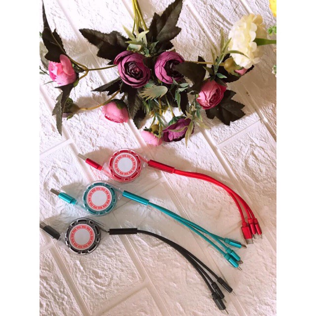 Sẵn hàng Dây Sạc 3 Đầu Rút Gọn