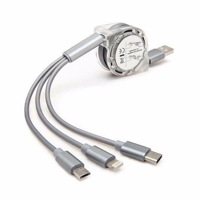 Giới thiệu Sẵn hàng Dây Sạc 3 Đầu Rút Gọn