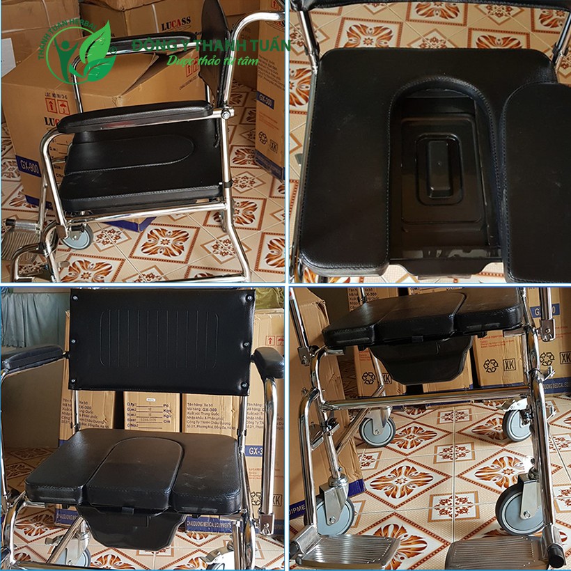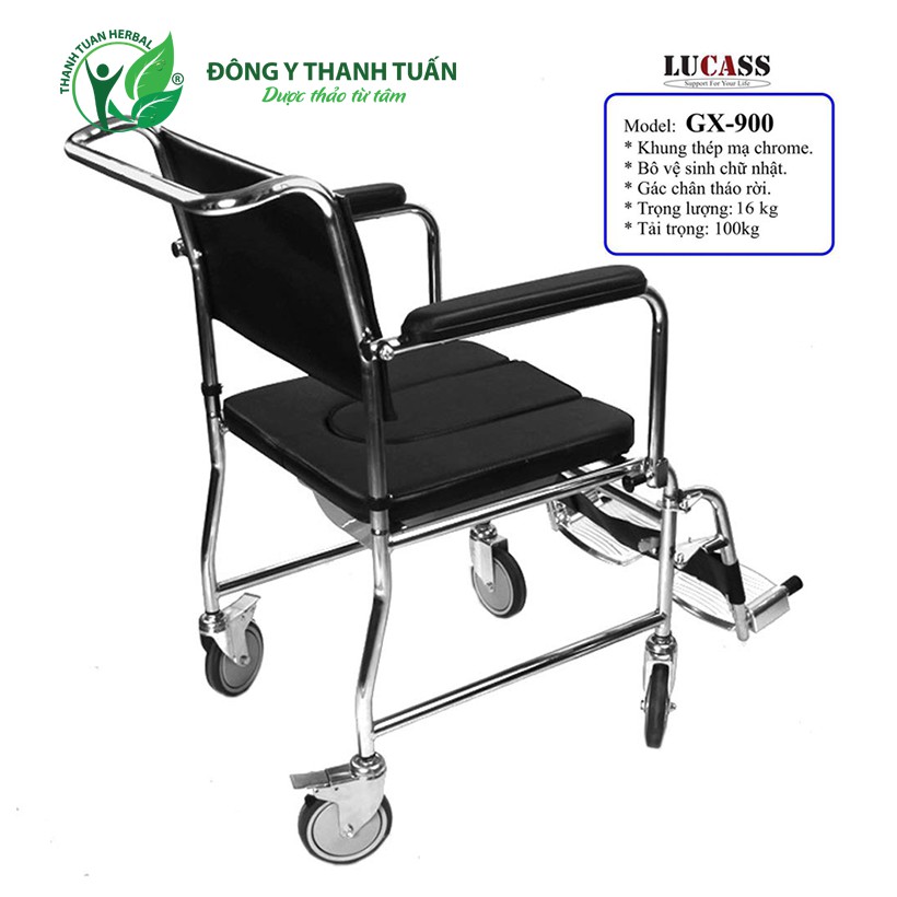 [Sẵn hàng] Ghế Bô Vệ Sinh Lucass GX-900 Có Đệm, Bánh Xe, Chỗ Gác Chân - Dùng Như 1 Chiếc Xe Lăn Đẩy Đơn Giản