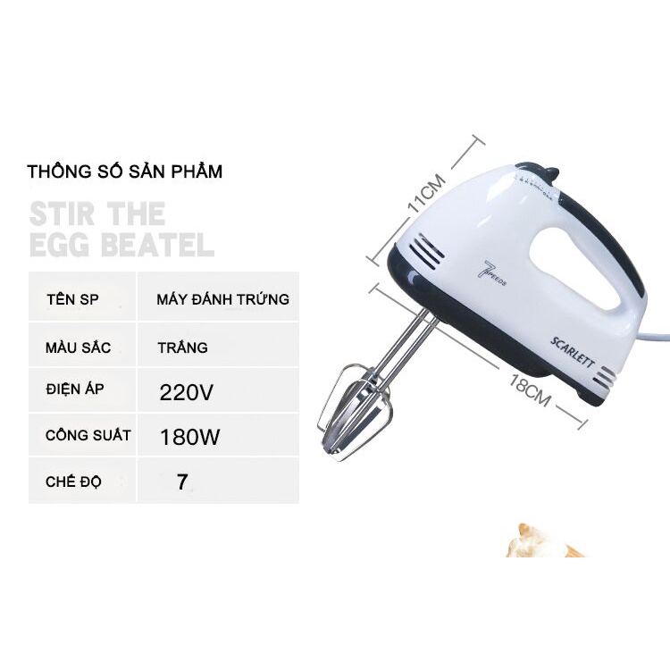 Máy Đánh Trứng Cầm Tay Máy Đánh Trứng Mini Cầm Tay Scarlett 7 Tốc Độ----------------------