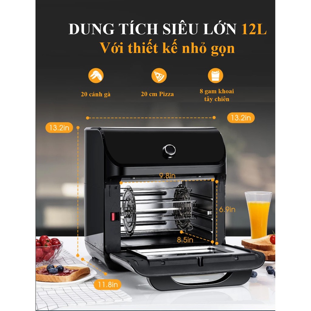 1️⃣ Màu đen sang trọng, dung tích 12L thỏa sức quay gà tới 2.5kg