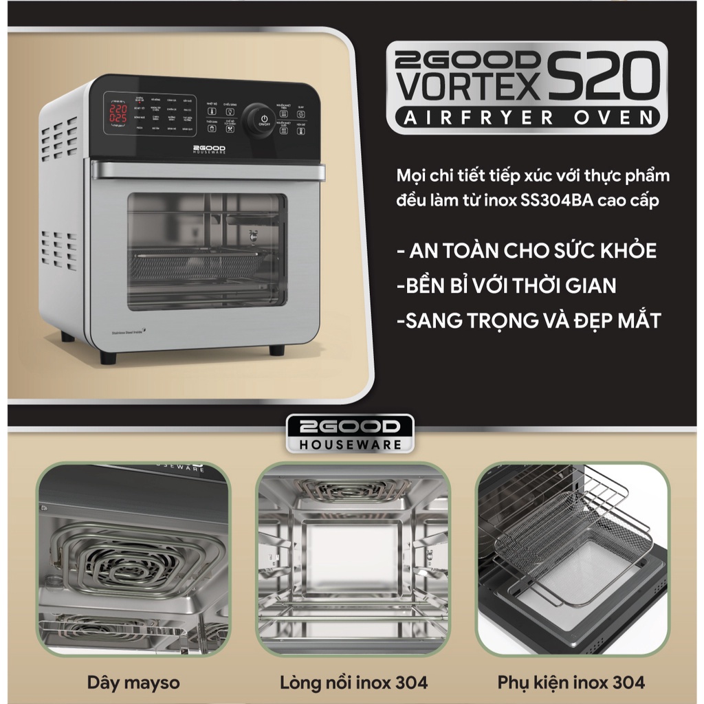 Nồi Chiên Không Dầu 2GOOD S20 Inox 304 - 15 Lít - Chế Biến Cùng Lúc 2 Món -16 Chế Độ Nấu BH 12 thángCam kết chính hãng - BH 12 tháng