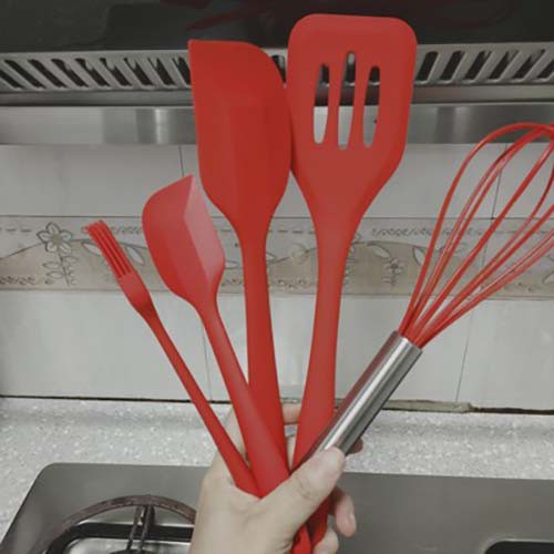 Bộ 5 dụng cụ làm bánh được làm từ silicone an toàn đã được cấp phép an toàn vệ sinh thực phẩm kết hợp với tay cầm bằng INOX tạo nên sự bền chắc của bộ dụng cụ làm bánh.🔸Ưu điểm: