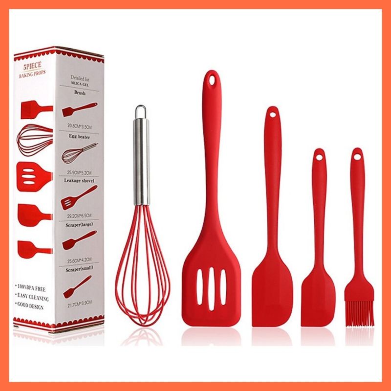(Sẵn hàng TO) Bộ Dụng Cụ Làm Bánh Silicone [Bảo Vệ Sức Khỏe - Bảo Vệ Môi Trường]. Bộ 5 chổi phới spatula silicon đỏ