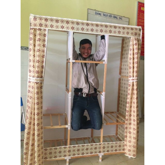 Tủ vải khung gỗTủ vải khung Gỗ 3 buồng được cấu tạo với các khung gỗ, thanh gỗ chịu lực tốt. Khung gỗ được nối với nhau bởi các mối nối nhựa dẻo cao cấp. Kết hợp với chất liệu vải không dệt tuy mỏng nhưng độ bền, dẻo dai và chiếc tủ có thể chịu được lực lên tới 150kg tương đương với 2 người lớn. Chính vì thế bạn có thể yên tâm về sản phẩm khi sử dụng không lo bị gãy, sập trong lúc sử dụng.