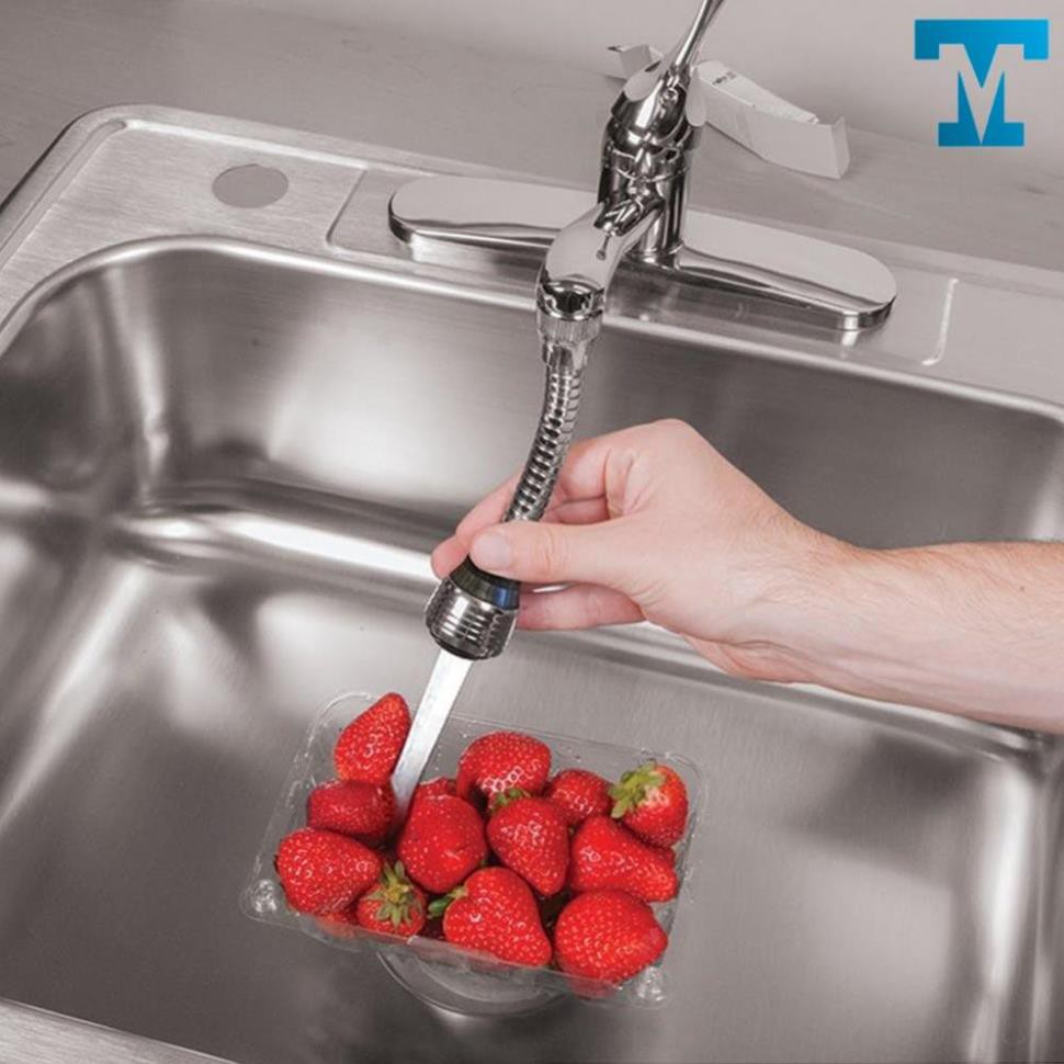 ❷ Dụng cụ nối vòi nước được thiết kế dạng vòi sen với những lỗ phun siêu nhỏ giúp lực phun nước mạnh hơn và tiết kiệm nước hơn đảm bảo hiệu quả thiết thực và tiết kiệm được một lượng nước tối đa. Vòi nước xoay 360 độ về nhiều hướng khác nhau giúp bạn thuận tiện hơn khi rửa chén bát, rau củ, thực phẩm,…hay dễ dàng hơn trong việc lau chùi bồn nước.