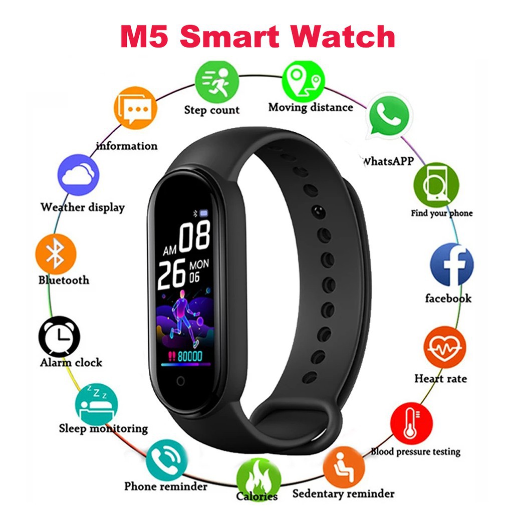 Điện Thoại & Phụ Kiện > Thiết bị đeo thông minh > Đồng hồ thông minh & Vòng đeo tay sức khỏe || [sẵn hàng] [XẢ KHO 3 NGÀY] Đồng hồ thông minh thể thao M5 - Thay được hình nền cá nhân (hàng tốt)Còn hàng