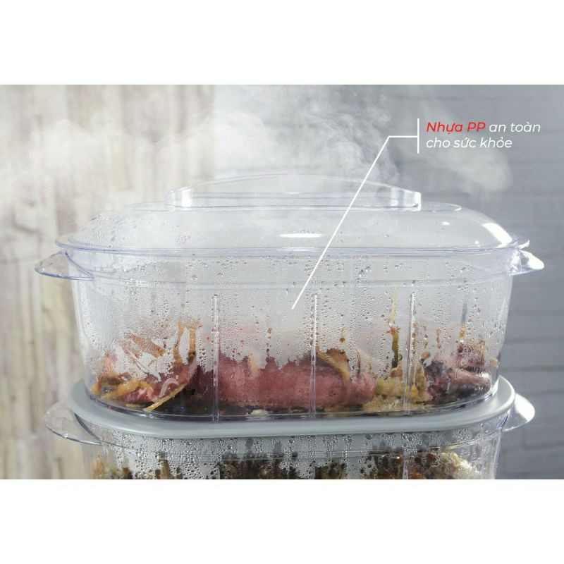 - Thiết kế 3 tầng với thể tích lên đến 10,5L cho mỗi tầng, bạn có thể hấp cùng lúc nhiều loại thực phẩm.