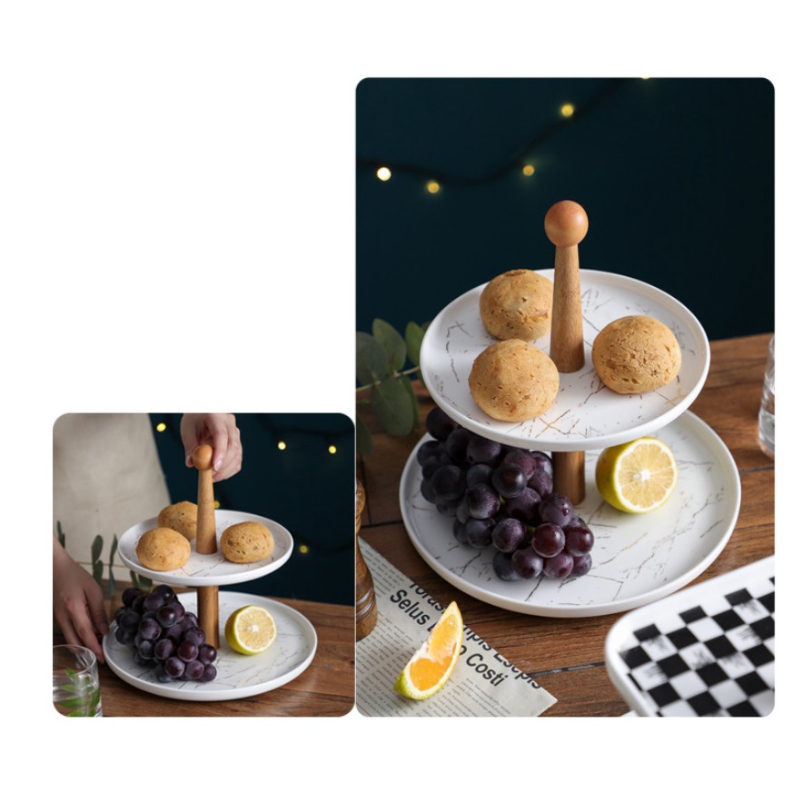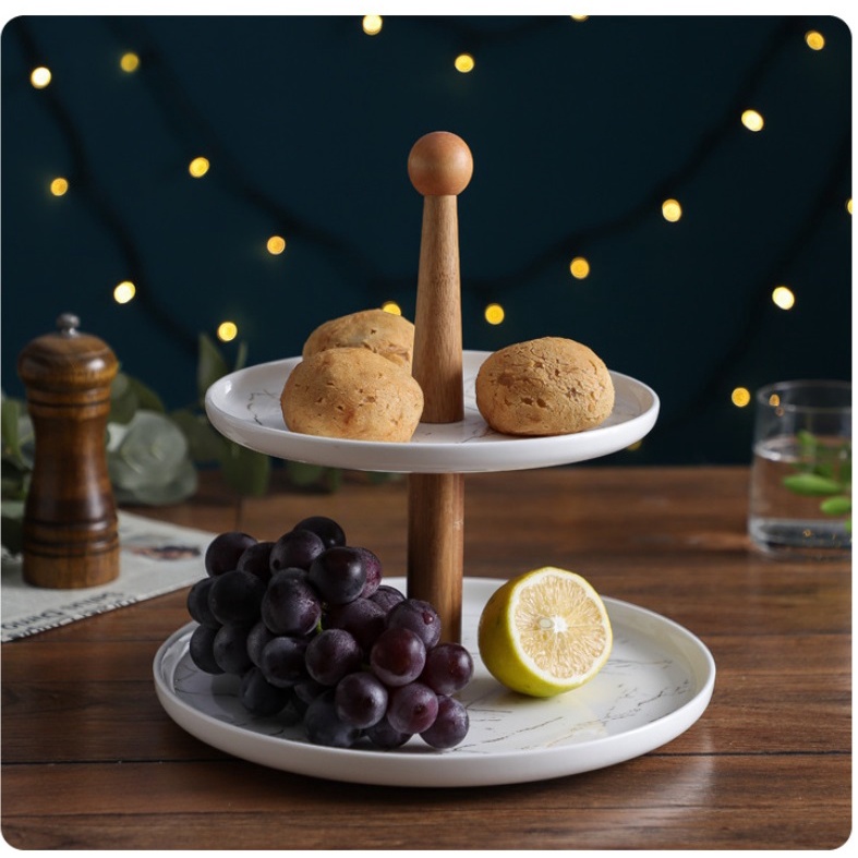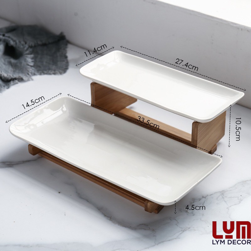 KHAY BÁNH 2 TẦNG SỨ CƯỜNG LỰC KÈM KỆ GỖ - SỨ CAO CẤP KHÔNG CHÌ - HÀNG XUẤT ÂUCHẤT LIỆU