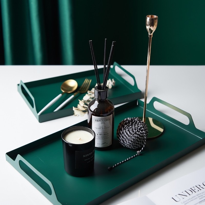 KHAY KIM LOẠI XANH CÓ TAY CẦM, KHAY DECOR CAO CẤP PHONG CÁCH BẮC ÂUCHẤT LIỆU: Kim loại mạ titan