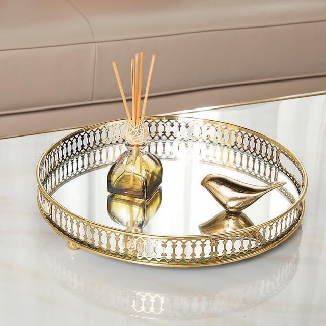 Giới thiệu (SẴN) KHay Gương Tròn Trang Trí Mạ Vàng Sang Trọng, Hàng chuẩn L1