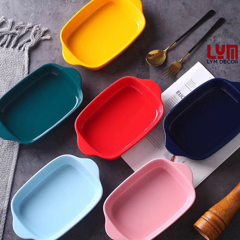 (SẴN) Khay nướng chữ nhật sâu lòng men bóng, khay sứ phong cách Bắc Âu - Hàng xuất khẩu