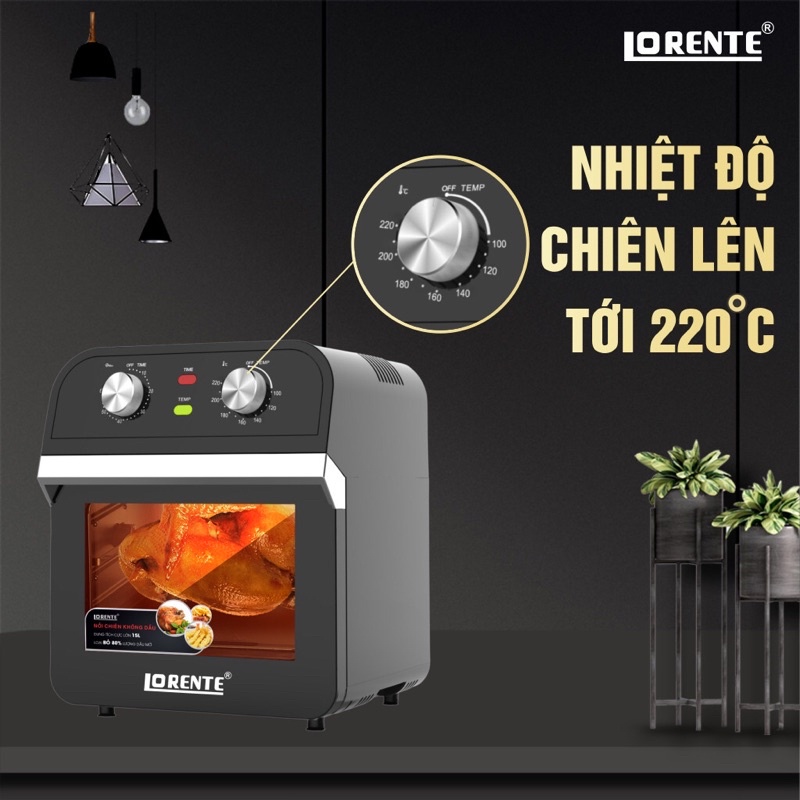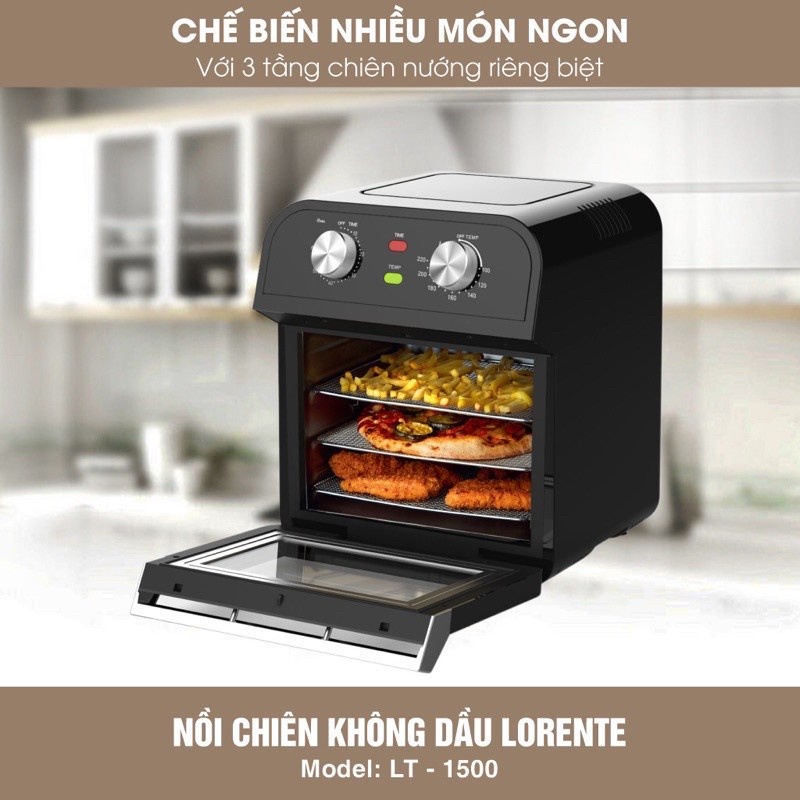 Giới thiệu [Sẵn Kho] Nồi chiên không dầu Dung tích 15Lit Lorente LT-1500, công suất 1600W, Bảo hành 12 tháng