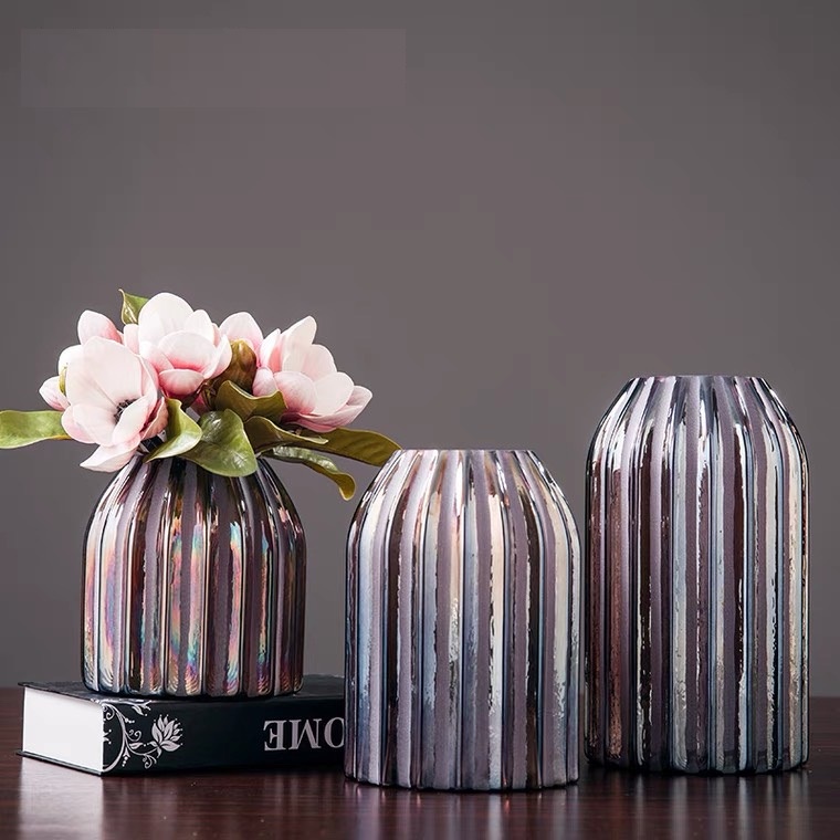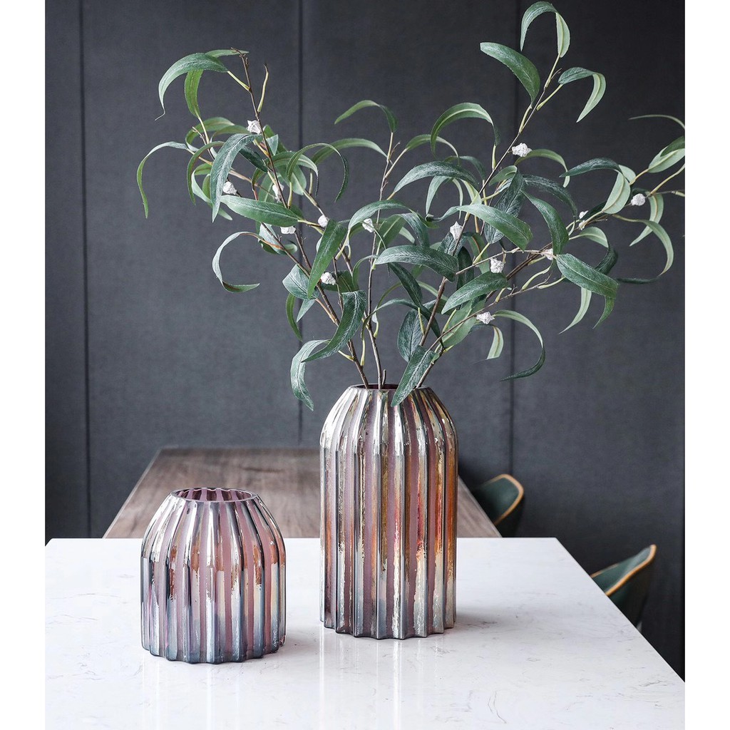 (SẴN) Lọ hoa đèn lồng ánh nhũ 2 màu hồng/xanh lục - Bình hoa thủy tinh màu cao cấp xuất khẩu