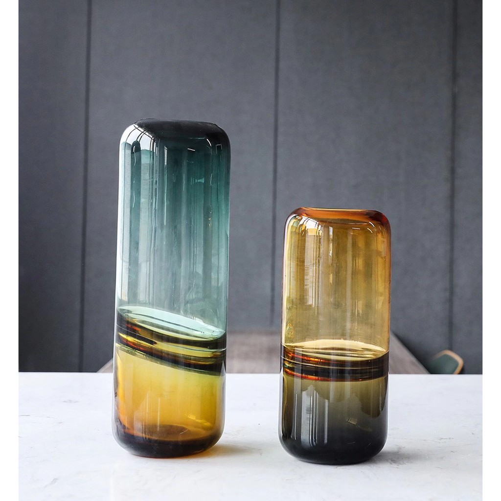 Nhà cửa & Đời sống > Trang trí nhà cửa > Bình trang trí || (SẴN) Lọ hoa trụ tròn phối màu xanh vàng - Lọ hoa thủy tinh phong cách Bắc Âu - Bình hoa thủy tinh màu cao cấp xuất khẩCòn hàng
