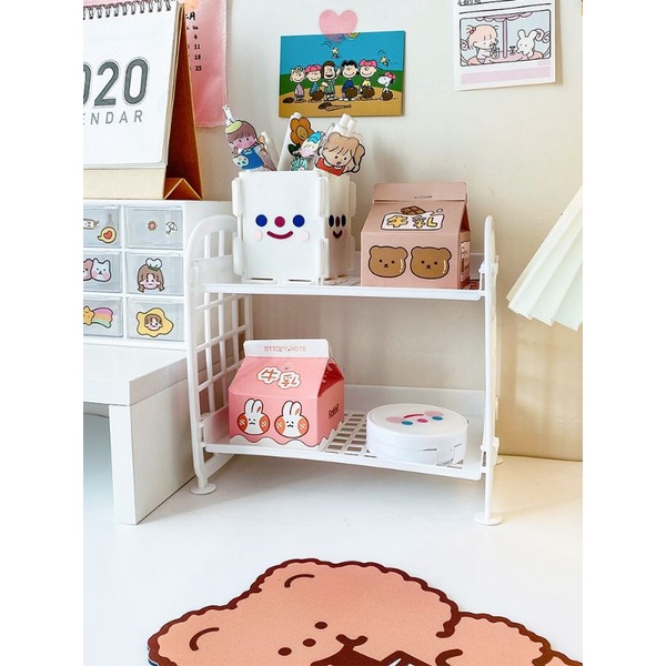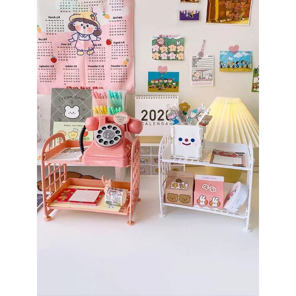 (Sẵn màu tím) Kệ Nhựa Mini 2 Tầng Để Đồ Bàn Làm Việc/Bàn Học/Bàn Phấn