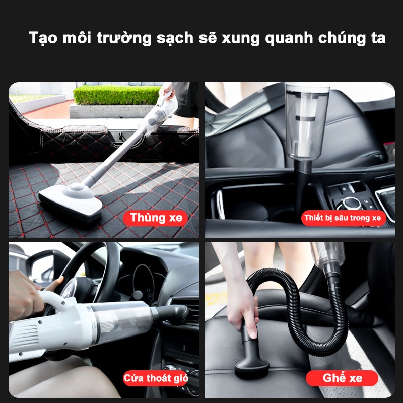 [SẴN] Máy hút bụi cầm tay mini, máy hút bụi giường, ô tô không dây HELLOLEIBOO lực hút 12000PA hút liên tục20 phút-T7030