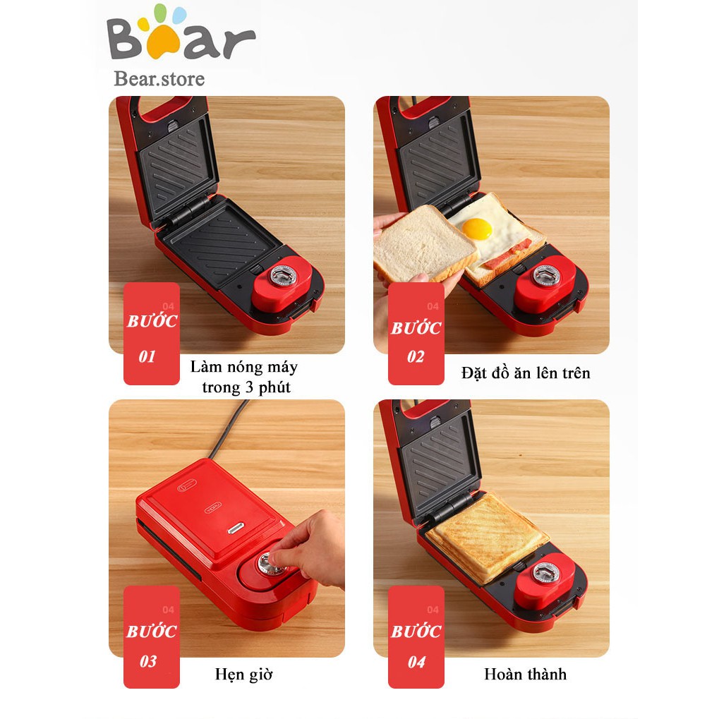 Giới thiệu [Có Sẵn] Máy Kẹp Bánh Mỳ, Nướng Bánh Mỳ Mini Đa Năng 216s - Bản hẹn giờ, Khay có thể tháo rời