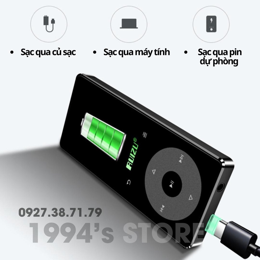 ✍️ RUIZU X02B MP3 có pin lithium dung lượng lớn có thể chơi nhạc lên tới 80-100 giờ.