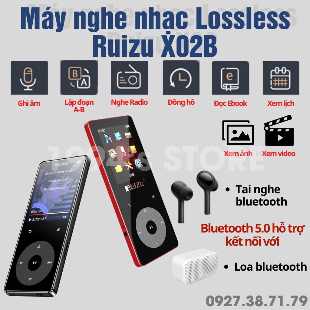 Thiết Bị Âm Thanh > Máy nghe nhạc > MP3 & MP4 || [SẴN] Máy nghe nhạc lossless Ruizu X02B - Bluetooth 5.0 - Loa ngoài siêu lớn - Cảm ứng - Xem phim, xem hình ảnh, ebook..Còn hàng