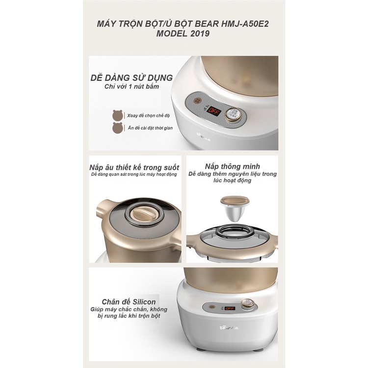 Giới thiệu [Mã ELHA22 giảm 5% đơn 300K] (Có sẵn) Máy nhào trộn ủ bột Bear HMJ-A50E2